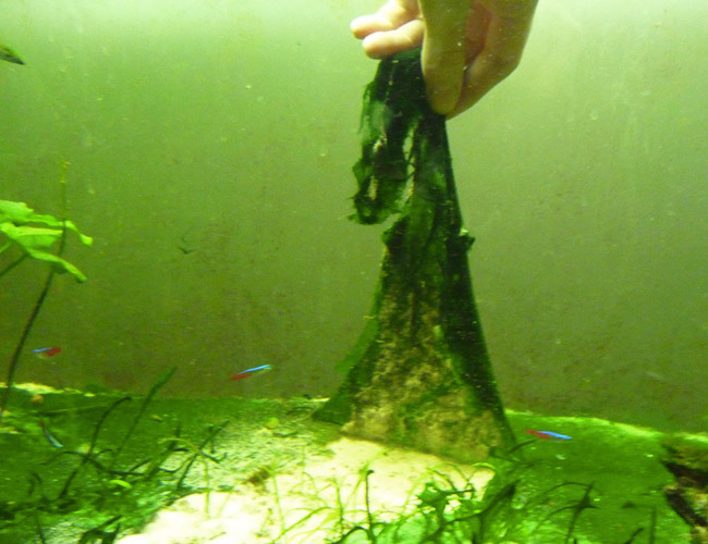 Если с водорослью не бороться - аквариум быстро наполнится тонкими нитями кладофоры.