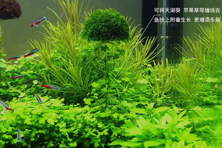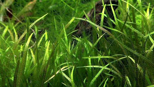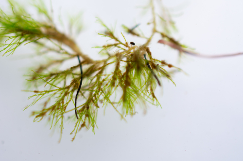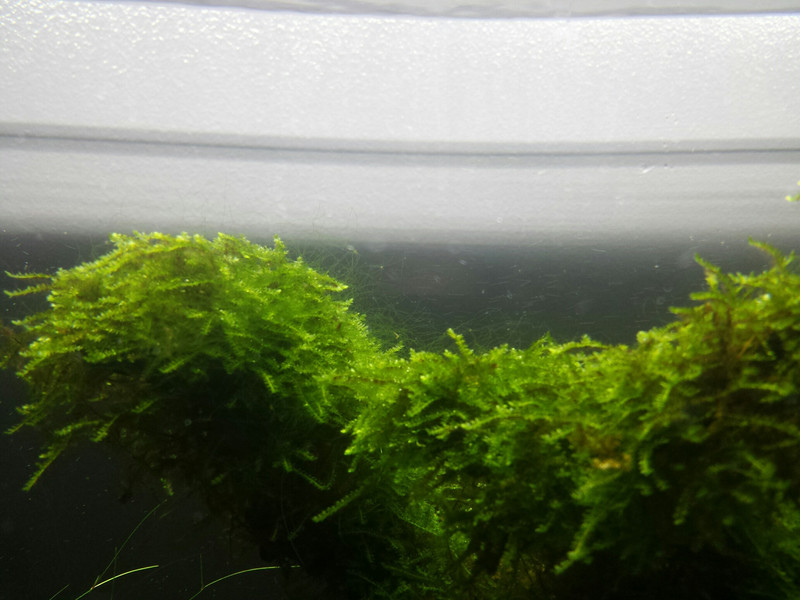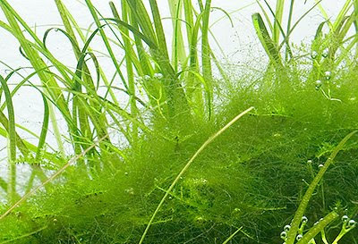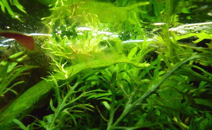 Внешний вид – очень тонкие длинные нити от светло-зеленого до зеленого цвета, которые окутывают аквариумные растения.