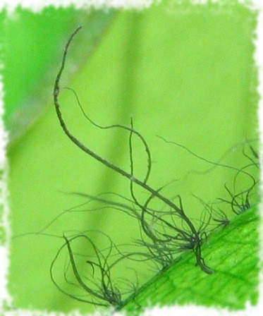 Короткие нити – от 0,5 см. до 1 см., Первоначально возникают по краям листьев и практически сразу начинают ветвиться.