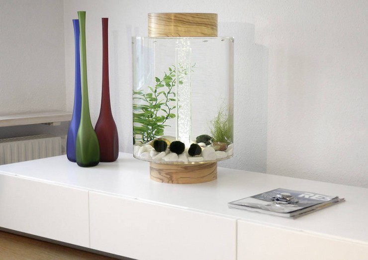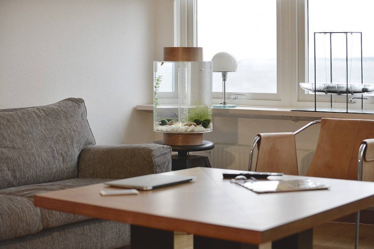 Шведский дизайнер Чарльз Тёрнрос и его команда недавно завершили разработку «Нором», скандинавскую интерпретацию классического аквариума. Бесшовный цилиндрический аквариум выполнен из ультра-сильного акрилового стекла и оснащен инновационным светильником, расположенном на основании, которое сочетает в себе световую рассеивающуюся пузырьковую трубку со скрытым зеркалом для создания уникального светового эффекта. Его дизайн можно менять, изменив цвет крышки и деревянной основы, в соответствии с вашим настроением и интерьером, требуемым в вашей комнате.