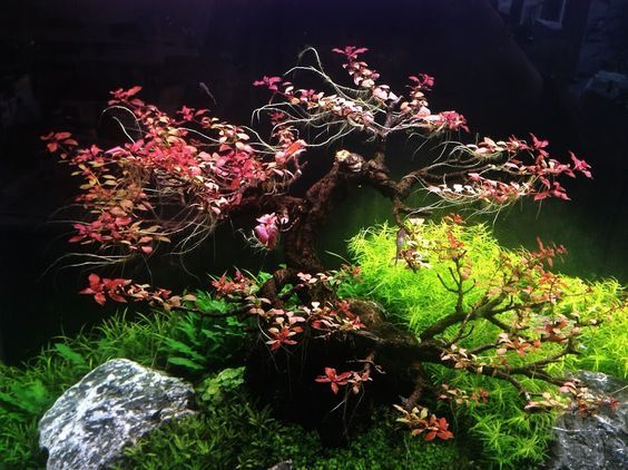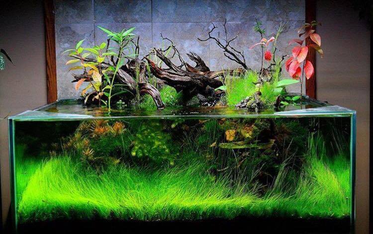 Как правило, оформление аквариума травника начинается от центра композиции (камень или самое крупное растение) и идет по кругу. То есть, например, в центр композиции высаживается центральное растение, как правило, кустовое короткостебельное (отлично смотрятся различные виды крупных криптокорин), а по сторонам от него можно разместить длинностебельку (например роталы и гигрофилы). На переднем плане используйте почвопокровку типа лилеохариса или кубы. При подборе растений для аквариума травника необходимо соблюсти принцип, что высокие растения располагаются у задней стенки, а низкорослые растения у передней стенки аквариума. В целом выбор растений, будет зависеть от размеров аквариума травника, так при объеме аквариума в 100-400 литров, в нем возможно большее видовое разнообразие, чем в аквариуме на 50 литров.