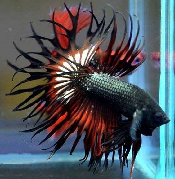Коронохвостые петушки получили свое название благодаря уникальной форме хвостового плавника. Мембрана между лучами значительно уменьшена, что делает лучи более заметными и придает хвостовому плавнику вид короны с зубцами. Crowntail bettas встречаются в широком диапазоне ярких цветов, причем наиболее распространенными являются темно-синий и темно-красный цвета. Вы также можете встретить самцов коронохвостов в пастельных тонах, с металлическими оттенками, и даже альбиносов. Коронохвосты обычно вырастают чуть менее 7 см в длину.