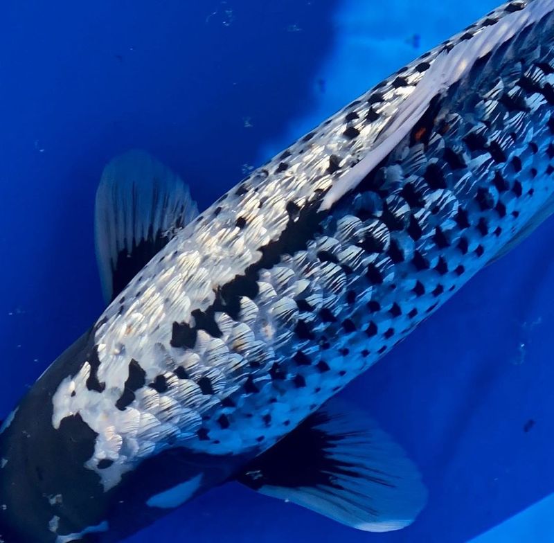 Кумонрю: уникальный тип кои, сплошное черное или белое тело с черными пятнами; его рисунок меняется по мере роста кои (символизирует жизненные изменения и преобразования)
